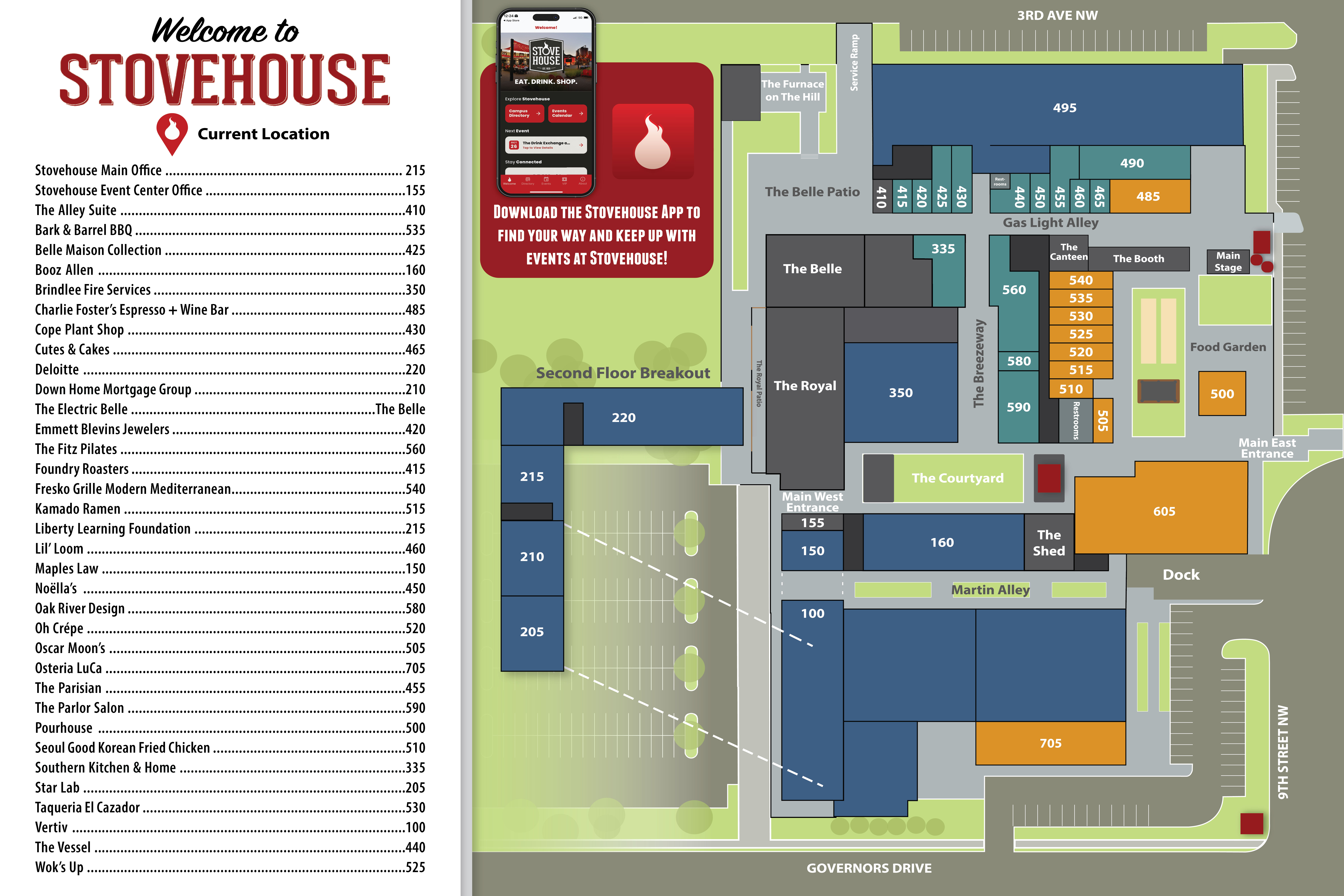 Browse the Restaurants, Shops, Offices, & Event Spaces at Stovehouse