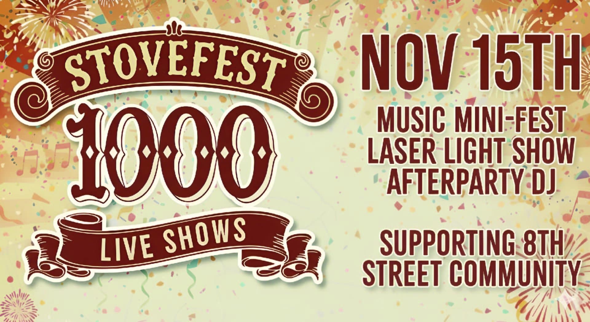🎸 Music + Festivities – 3:00pm – 8:00pm 🪩 Stovefest After Party – 8:00pm – until