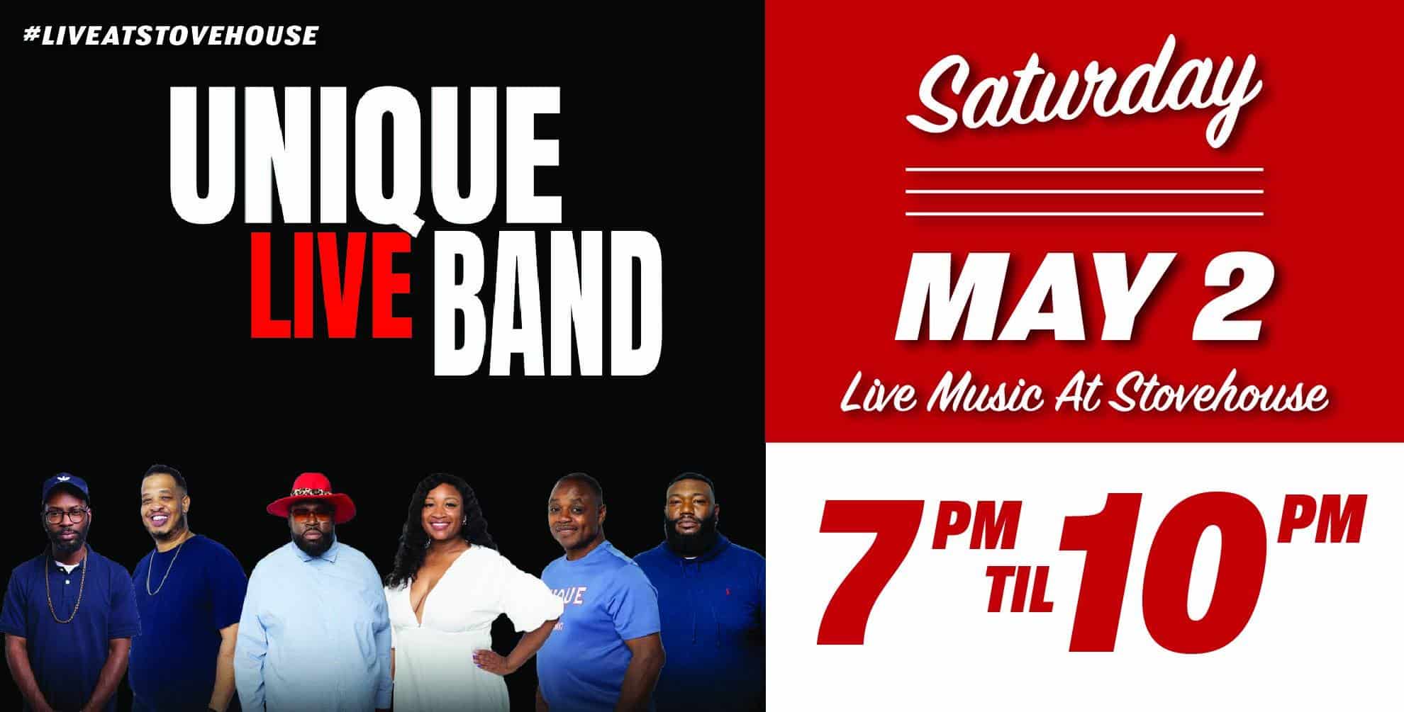If you need us, we’ll be at the front of the stage gettin' down with a drink in hand because Unique Live Band is BACK! Come on in y'all! It's going to be a good night.