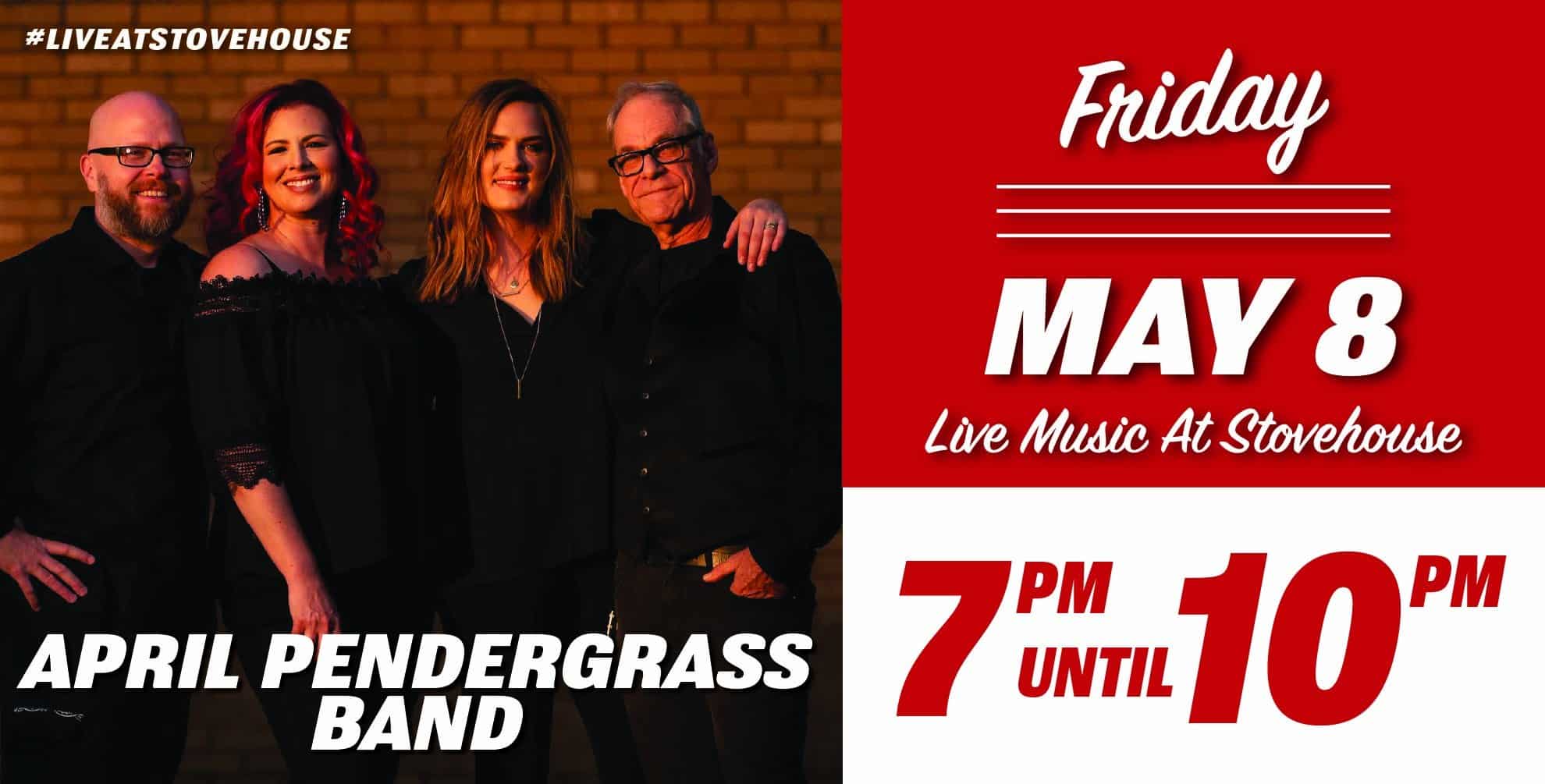The only thing on your weekend to-do list: April Pendergrass Band LIVE at Stovehouse. That is all. Come on in!